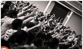 adoración a Dios – y después de ser despedidos, un tropel de ellos salen al